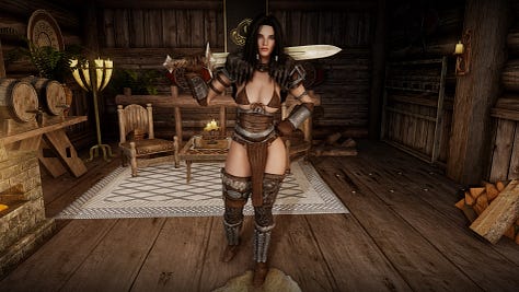 Mornhilde is the daughter of a powerful wizard and a warrior mercenary. Her parents trained her from a very young age in sword and shield combat. When she was a young teen she made the journey up the mountain to High Hrothgar and begged the Greybeards to train her in their ways. She became a Disciple of the Greybeards and learned the art of the Voice. Although she is not a Dragonborn, she has always dreamed of meeting one.